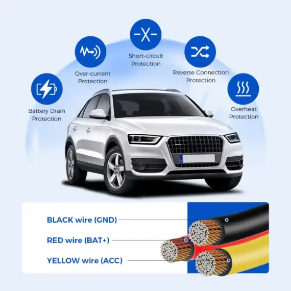 - Low Voltage Protection - The inbuilt minimum voltage limiter will protect the vehicle's battery from going flat. If the voltage of your car battery drops to this default voltage 11.8V or 23.6V, it will cut off the power, which leaves you with enough power to start your car for the next time.