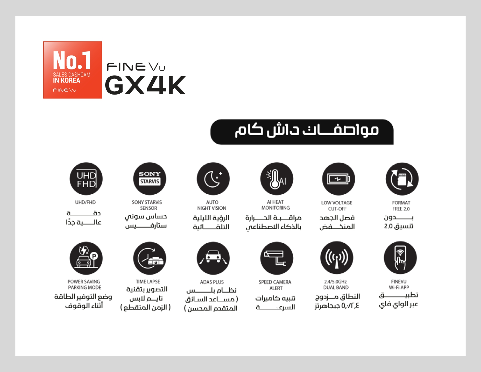 The FINEVU GX4K Dash Cam marks the beginning of next-generation 4K vehicle surveillance. Designed with premium hardware, AI-powered protection, and advanced parking monitoring, the GX4K delivers reliable evidence, superior night performance, and long-term battery safety — all in a compact, non-LCD design.